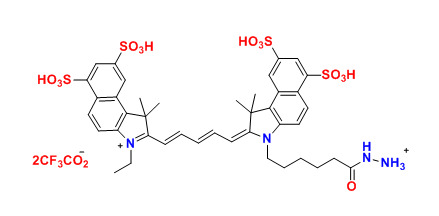 花菁染料Cy5,常被應(yīng)用于生物分子標(biāo)記,熒光成像及其他熒光生物分析。他們廣泛應(yīng)用于多肽,蛋白,核苷酸等。Cy5染料在與蛋白質(zhì)結(jié)合后熒光大幅度增加。